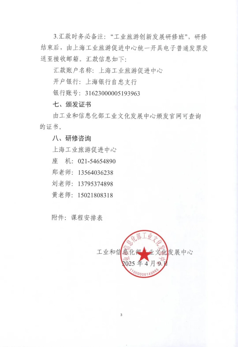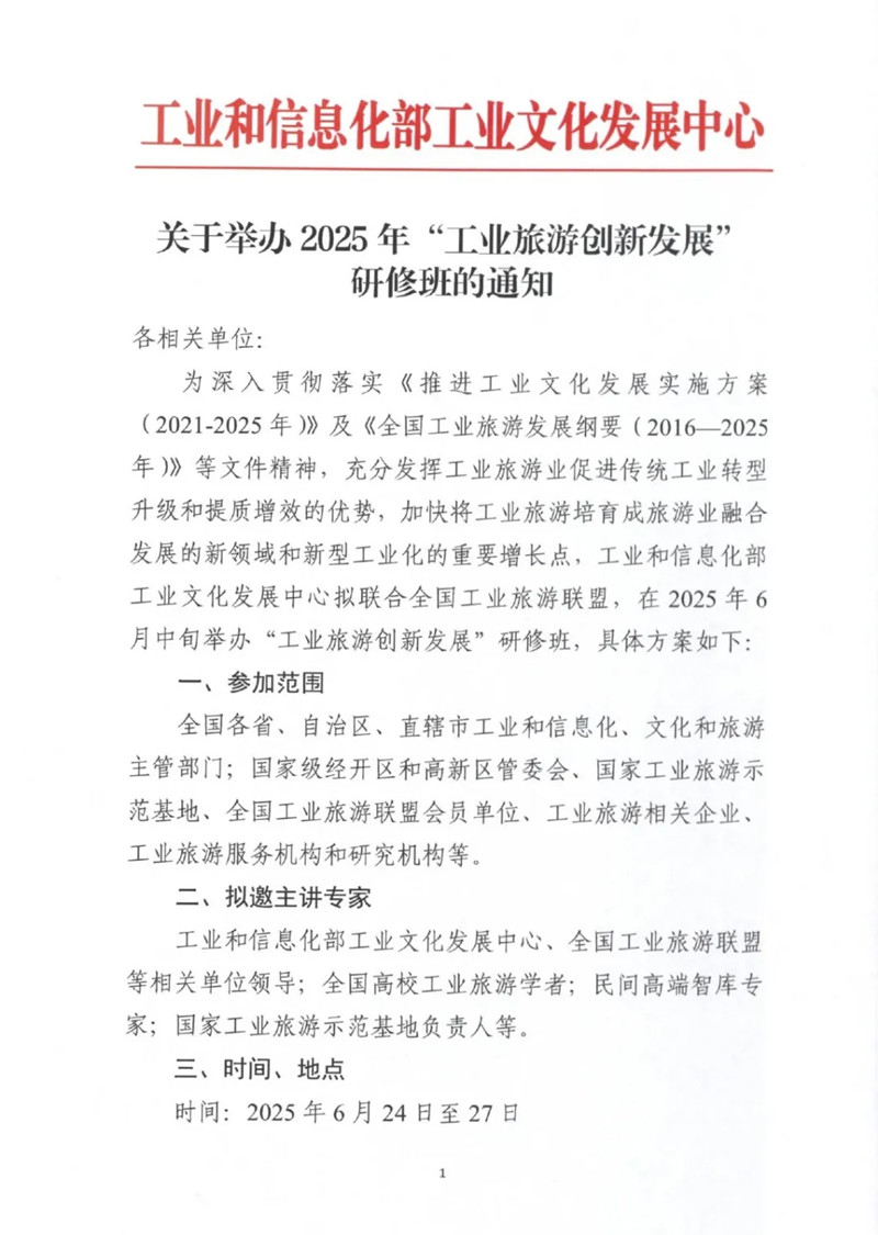 关于举办2025年“工业旅游创新发展”研修班的通知