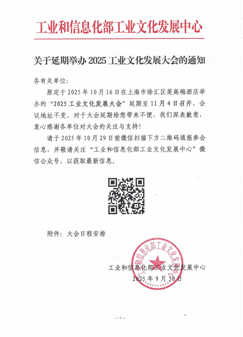 关于延期举办2025工业文化发展大会的通知