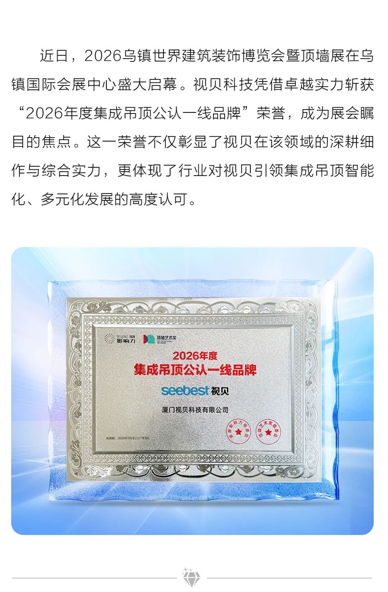 实至名归!视贝科技荣膺“2026年度集成吊顶公认一线品牌”