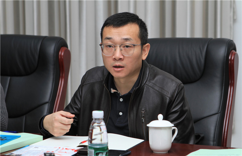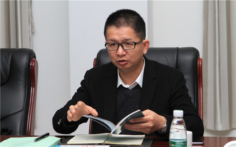 图为寻找中国制造隐形冠军丛书编委会主编陈良财介绍调研工作概况