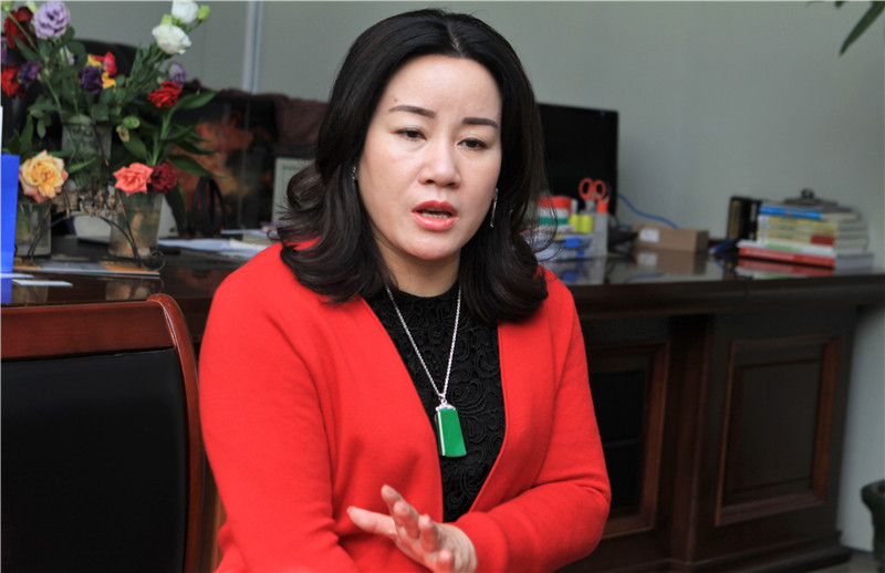 图为神悦铸造董事长占秋忆介绍公司发展情况