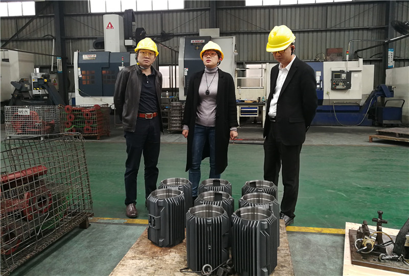 图为编委会工作组参观神悦铸造生产车间