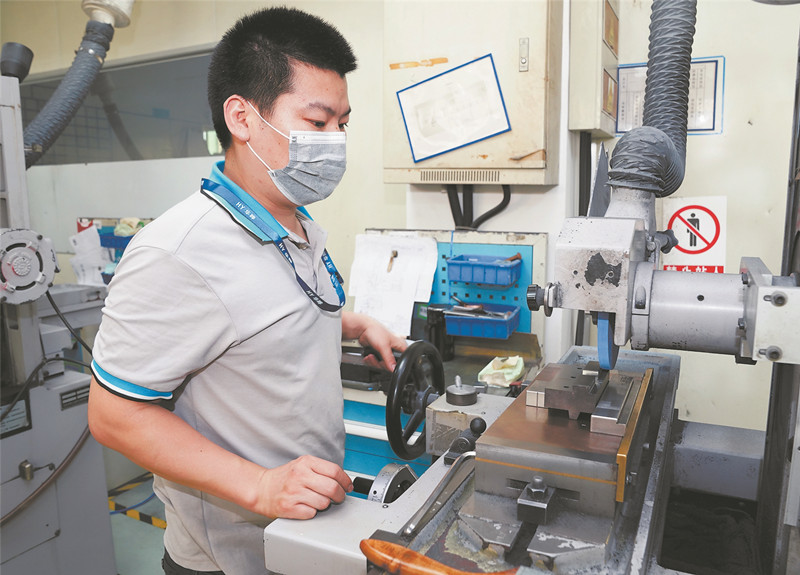 华晔精密工作人员在加工零件
