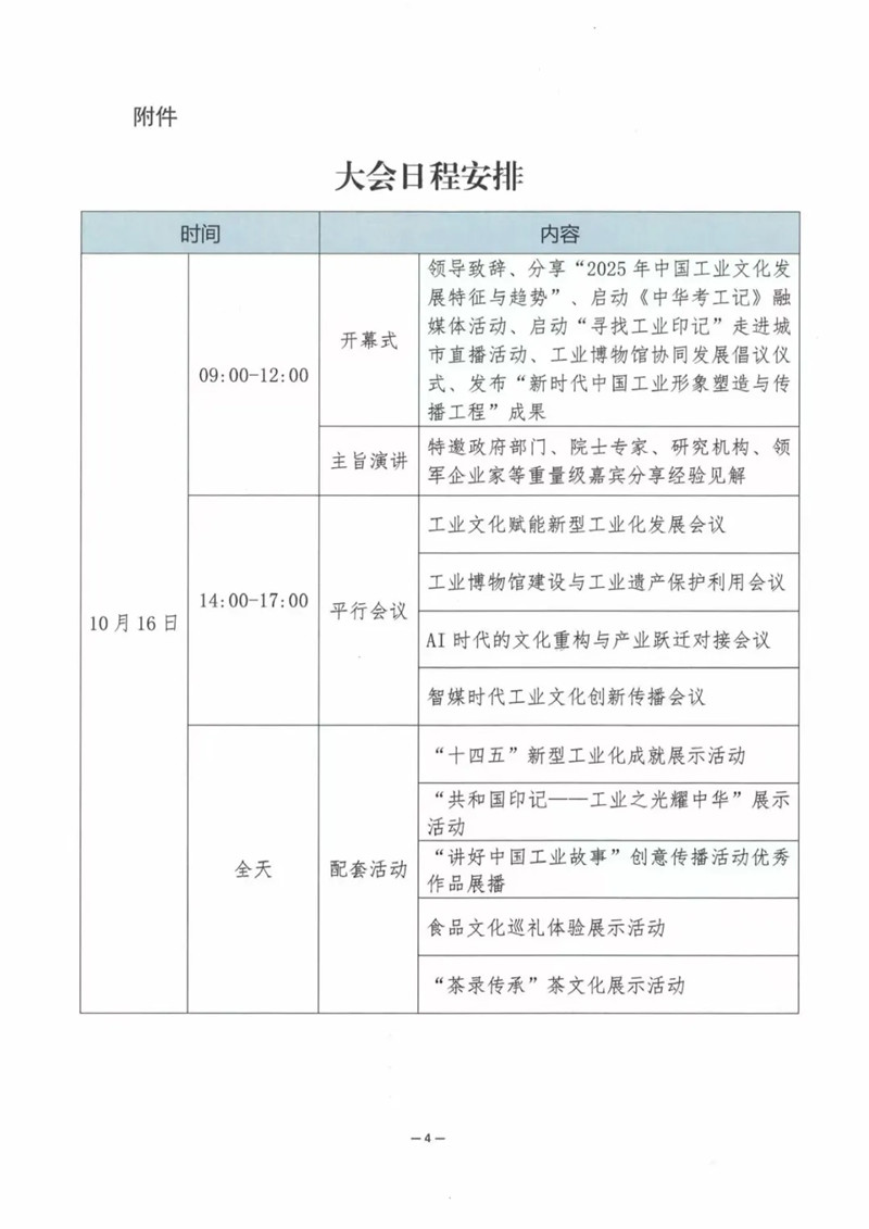 为深入学习贯彻习近平新时代中国特色社会主义思想,推进中国式现代化建设,落实国家新型工业化和工业和信息化部等八部门印发的《推进工业文化发展实施方案(2021-2025年)》,聚工业文化之力,发展新质生产力,推进新型工业化,在工业和信息化部支持指导下,工业和信息化部工业文化发展中心会同上海市经济和信息化委员会、上海市徐汇区人民政府将于10月16日在上海市共同主办2025工业文化发展大会。